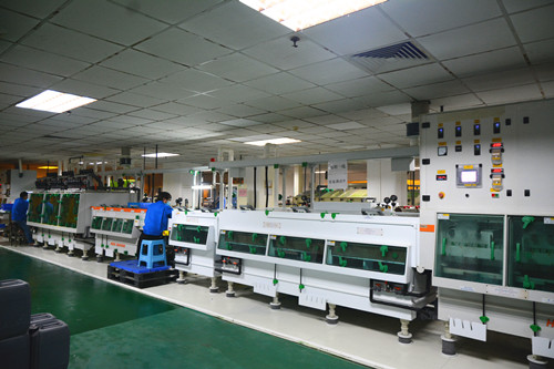 參訪團后走訪了珠海鎮(zhèn)東有限公司。珠海鎮(zhèn)東成立于1999年1月1日,公司的核心產品是印制電路板制造用陶瓷刷輥、不織布刷輥、尼龍針刷輥、火山灰刷輥,另外還有光學級曝光玻璃、全系列各類刷板機系統(tǒng)(21刷/17刷/13刷/9刷/8刷/4刷/2刷/1刷<以及薄板、厚板>)、砂帶研磨機、銅粉過濾機、真空絲印機和匹配型塞孔油墨/樹脂等線路板制造用相關設備及物料, 并為廣大客戶提供真空絲印塞孔、研磨的代工服務。在珠海鎮(zhèn)東的生產車間內,各生產設備正在正常運行,工人們有條不紊地調整著設備參數。據總經理趙其平介紹,2016年開工大吉,訂單量穩(wěn)中有升,今后將繼續(xù)提升企業(yè)的科研實力,以優(yōu)質的產品服務客戶、為客戶創(chuàng)造價值。
