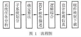 數字系統的設計采用自頂向下、由粗到細,逐步分解的設計方法,頂層電路是指系統的整體要求,下層是具體的邏輯電路的實現。自頂向下的設計方法將一個復雜的系統逐漸分解成若干功能模塊,從而進行設計描述,并且應用EDA 軟件平臺自動完成各功能模塊的邏輯綜合與優化,門級電路的布局,再下載到硬件中實現設計。