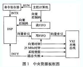 目標板是一個中央資源板子系統,其結構如圖1所示。主要作用是為數字通道子系統提供精確的時序信息,為數字通道板之間提供定時和控制信號,分析處理數字通道子系統和探筆子系統返回的數據。該電路板上有4個邊界掃描器件:EPLD(EPM7256AETC144)、FPGA(EP1S25F780)、Flash EPROM(EPC8)和DSP(TMS320C6203B)。
